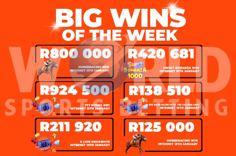 Every week, World Sports Betting South Africa announces its six biggest wins of the week. The wins cover both the casino and the sportsbooks, and this week, four of the wins came from the Slots section of the site.